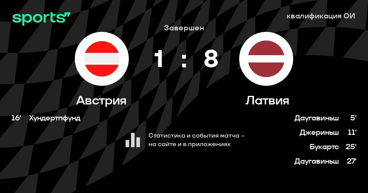 В прошедшем матче в рамках турнира квалификация ОИ состоялась встреча команд Австрия - Латвия в городе Рига (Латвия) на стадионе Арена-Рига (вместимость - 12500)