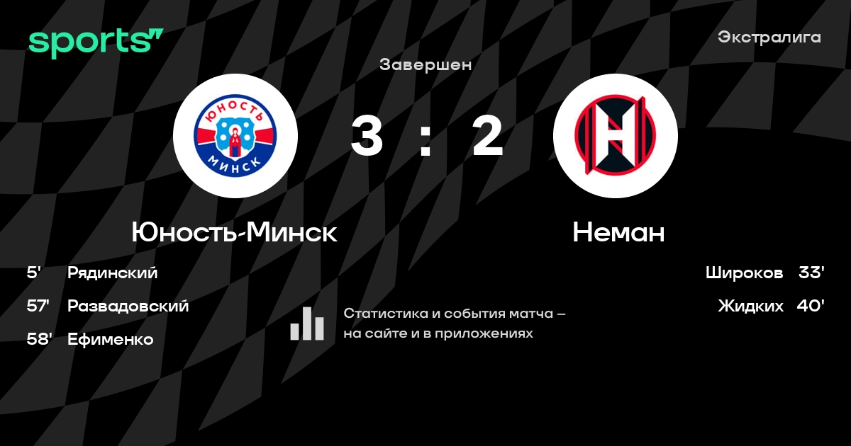 В прошедшем матче в рамках турнира Экстралига состоялась встреча команд Юность-Минск - Неман в городе Минск (Беларусь) на стадионе Чижовка-Арена (вместимость - 9487)