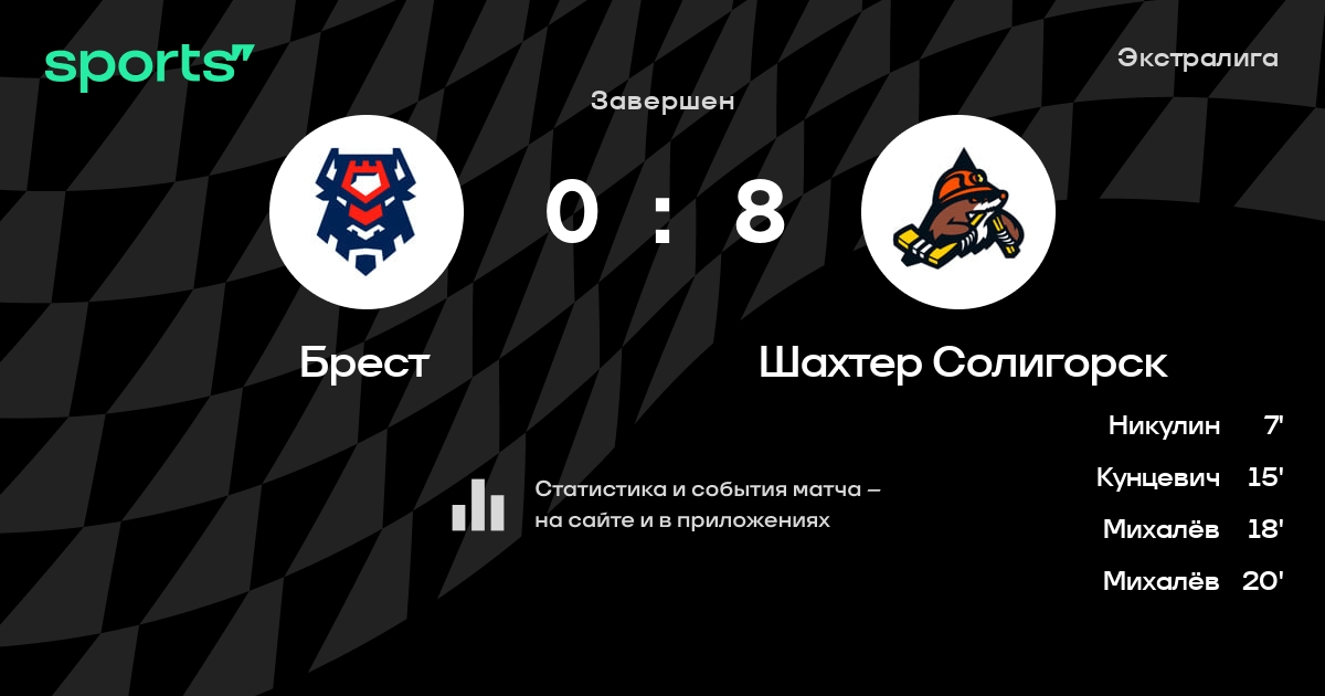 В прошедшем матче в рамках турнира Экстралига состоялась встреча команд Брест - Шахтер Солигорск в городе Брест (Беларусь) на стадионе Ледовый дворец Брест (вместимость - 2000)