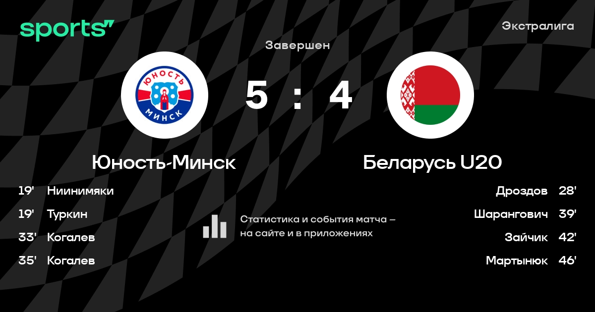 В прошедшем матче в рамках турнира Экстралига состоялась встреча команд Юность-Минск - Беларусь U20 в городе Minsk на стадионе Yunost Minsk Arena