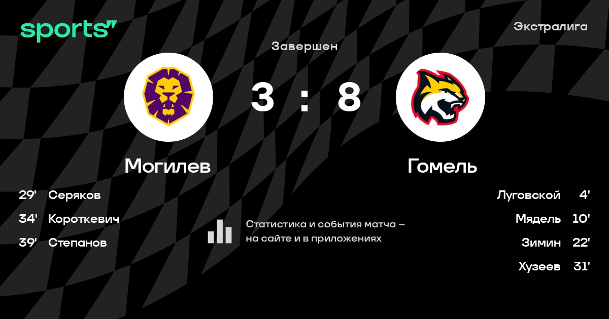 В прошедшем матче в рамках турнира Экстралига состоялась встреча команд Могилев - Гомель в городе Могилев (Беларусь) на стадионе Ледовый дворец спорта Могилев (вместимость - 3048)