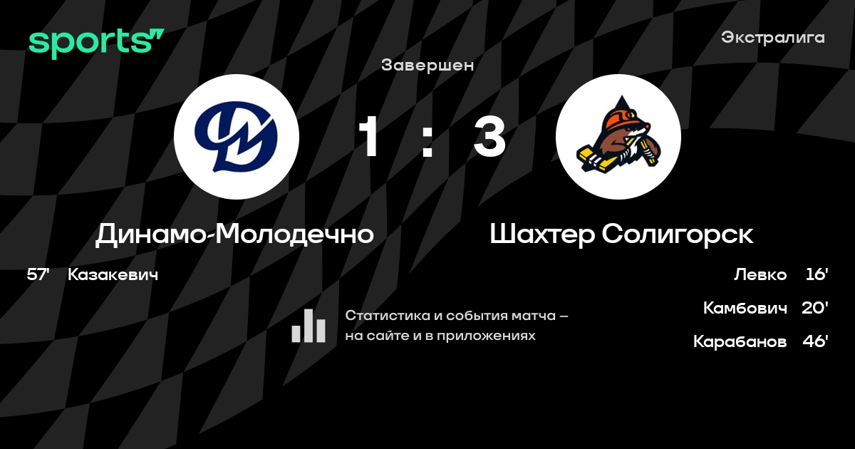 В прошедшем матче в рамках турнира Экстралига состоялась встреча команд Динамо-Молодечно - Шахтер Солигорск в городе Молодечно (Беларусь) на стадионе Ледовый дворец Молодечно (вместимость - 2000)