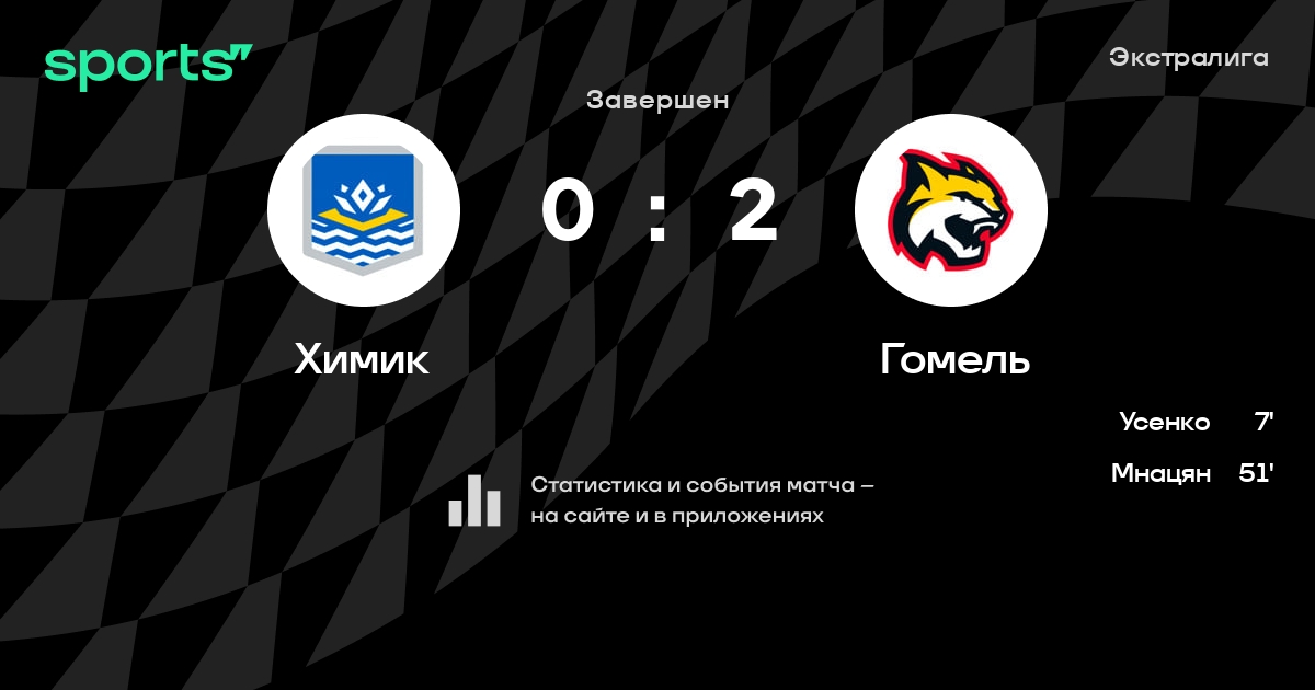 В прошедшем матче в рамках турнира Экстралига состоялась встреча команд Химик - Гомель в городе Новополоцк (Беларусь) на стадионе Дворец культуры и спорта (вместимость - 1200)