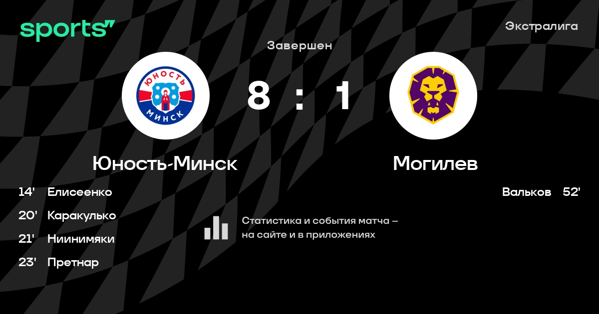 В прошедшем матче в рамках турнира Экстралига состоялась встреча команд Юность-Минск - Могилев в городе Minsk на стадионе Yunost Minsk Arena