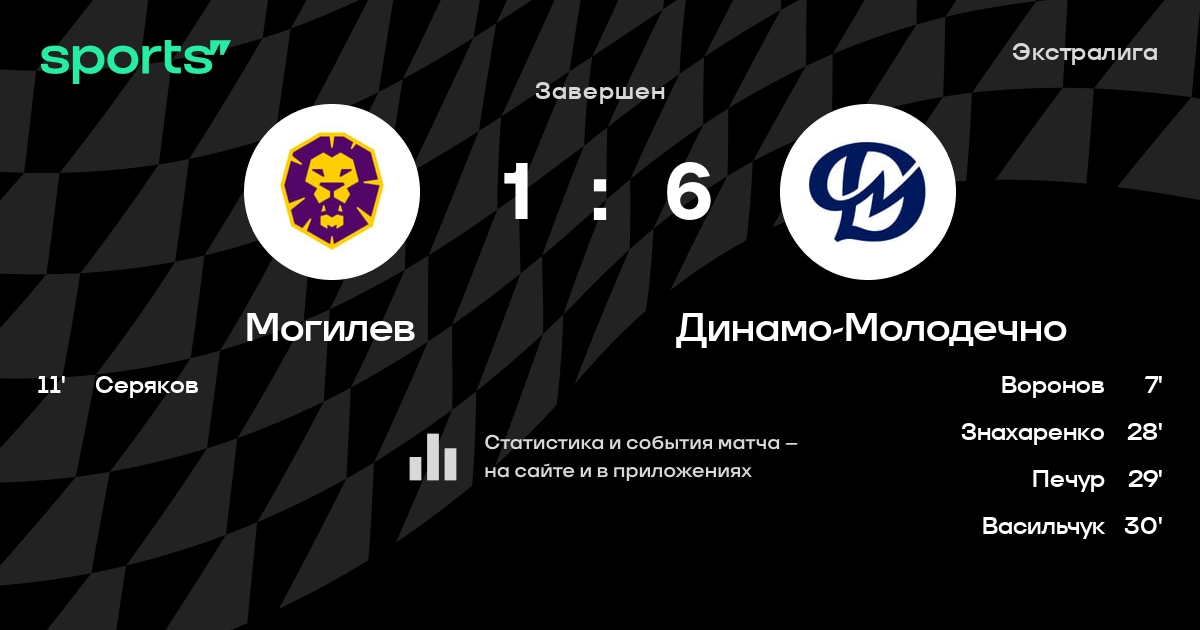 В прошедшем матче в рамках турнира Экстралига состоялась встреча команд Могилев - Динамо-Молодечно в городе Могилев (Беларусь) на стадионе Ледовый дворец спорта Могилев (вместимость - 3048)