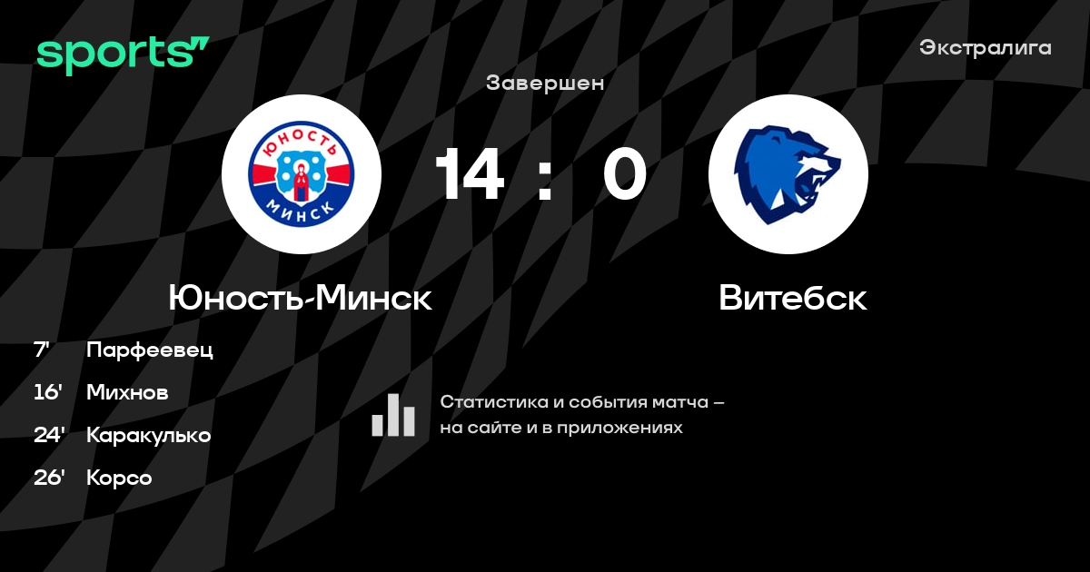 В прошедшем матче в рамках турнира Экстралига состоялась встреча команд Юность-Минск - Витебск в городе Minsk на стадионе Yunost Minsk Arena
