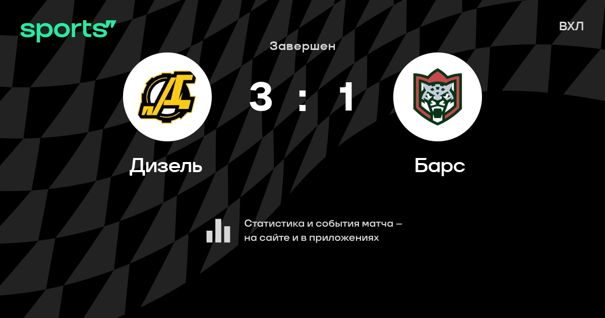 В прошедшем матче в рамках турнира ВХЛ состоялась встреча команд Дизель - Барс