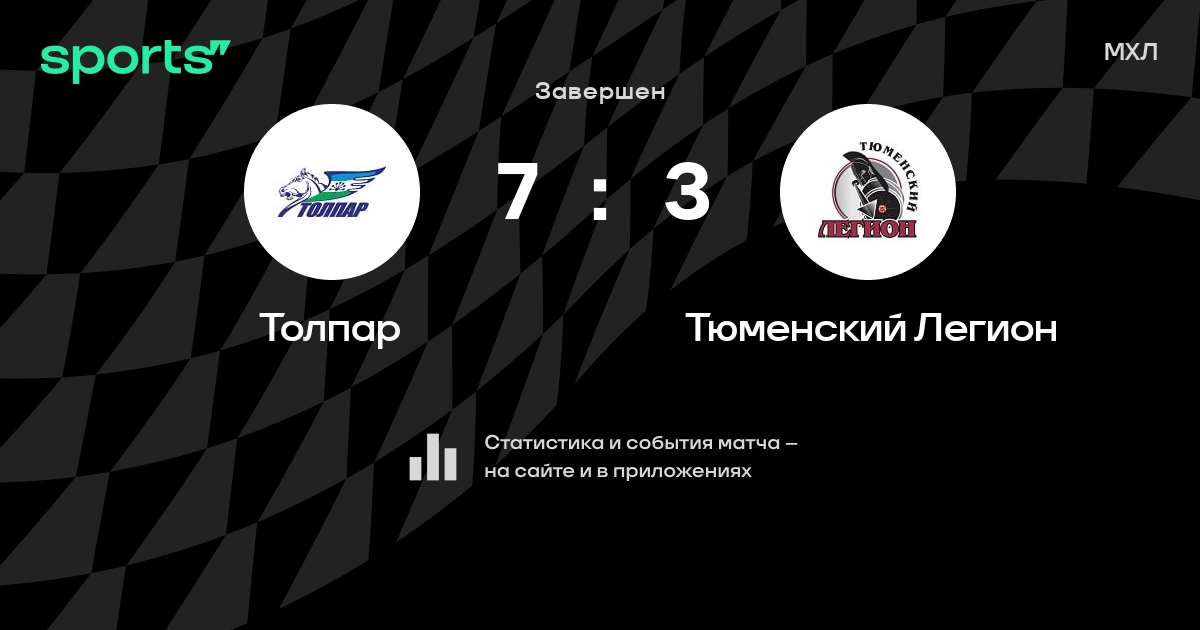 В прошедшем матче в рамках турнира МХЛ состоялась встреча команд Толпар - Тюменский Легион