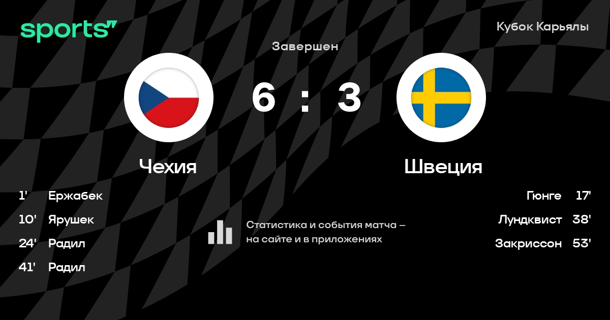 Как прошел матч, смотрите в текстовой трансляции Чехия - Швеция на Sports.ru