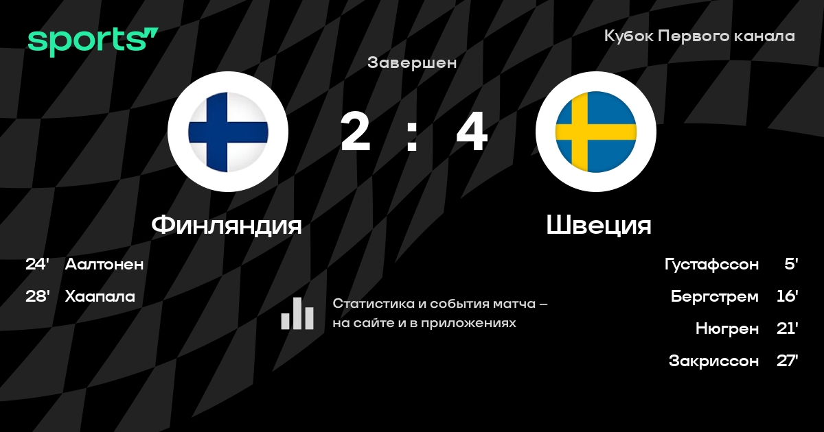 В прошедшем матче в рамках турнира Кубок Первого канала состоялась встреча команд Финляндия - Швеция в городе Москва (Россия) на стадионе ЦСКА-Арена (вместимость - 5600)
