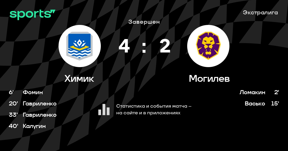 В прошедшем матче в рамках турнира Экстралига состоялась встреча команд Химик - Могилев в городе Новополоцк (Беларусь) на стадионе Дворец культуры и спорта (вместимость - 1200)