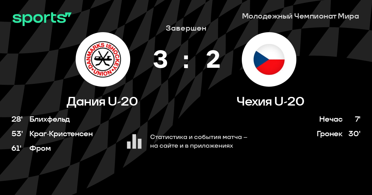 07:58 Дания (U-20) – Финляндия (U-20). Датчане одержали третью в истории победу на МЧМ, нанеся 10 бросков по воротам|22