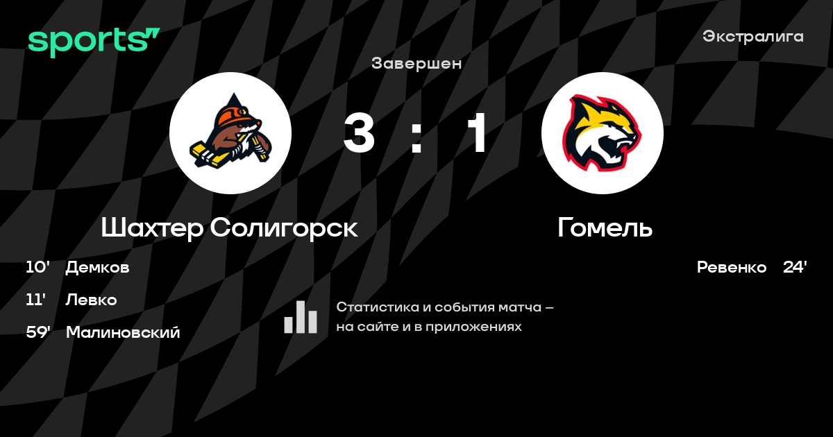 В прошедшем матче в рамках турнира Экстралига состоялась встреча команд Шахтер Солигорск - Гомель в городе Солигорск (Беларусь) на стадионе Ледовый дворец спорта Солигорск (вместимость - 1800)