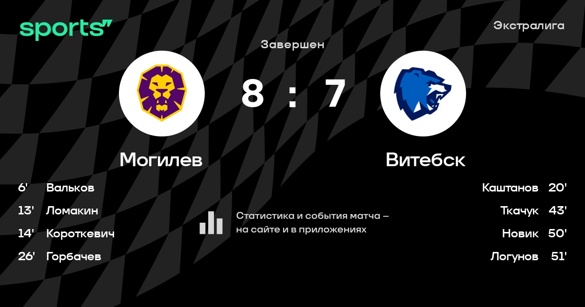 В прошедшем матче в рамках турнира Экстралига состоялась встреча команд Могилев - Витебск в городе Могилев (Беларусь) на стадионе Ледовый дворец спорта Могилев (вместимость - 3048)
