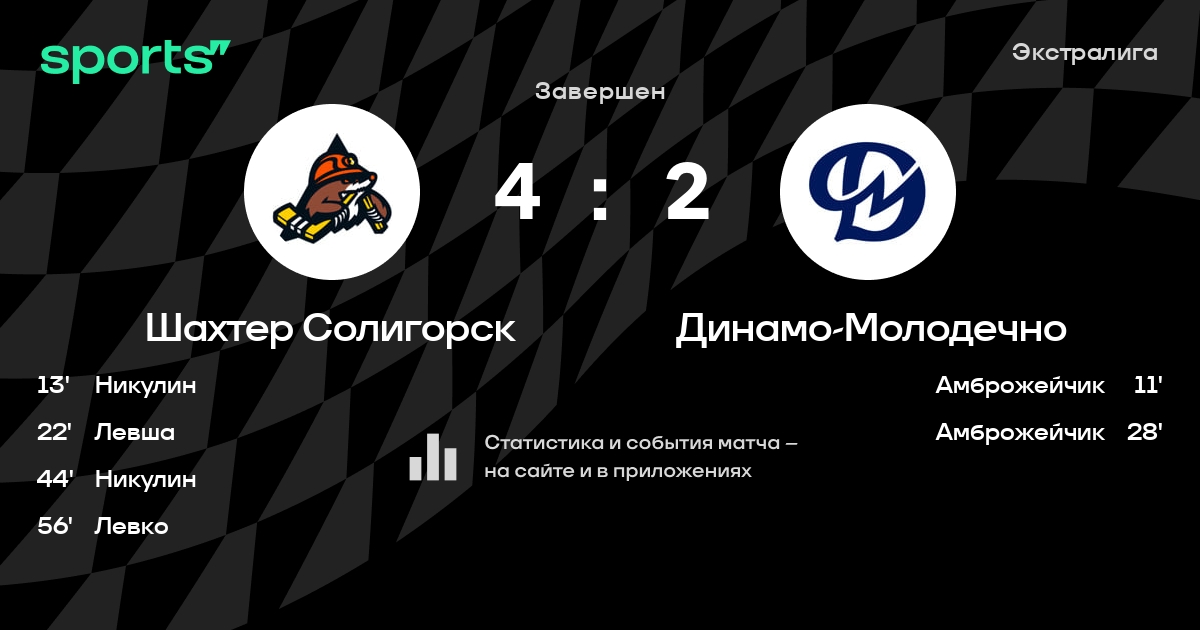 В прошедшем матче в рамках турнира Экстралига состоялась встреча команд Шахтер Солигорск - Динамо-Молодечно в городе Солигорск (Беларусь) на стадионе Ледовый дворец спорта Солигорск (вместимость - 1800)