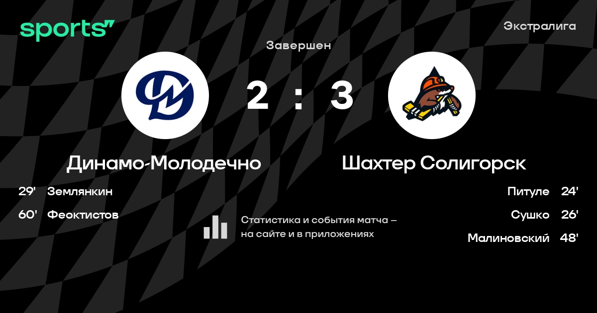 В прошедшем матче в рамках турнира Экстралига состоялась встреча команд Динамо-Молодечно - Шахтер Солигорск в городе Молодечно (Беларусь) на стадионе Ледовый дворец Молодечно (вместимость - 2000)