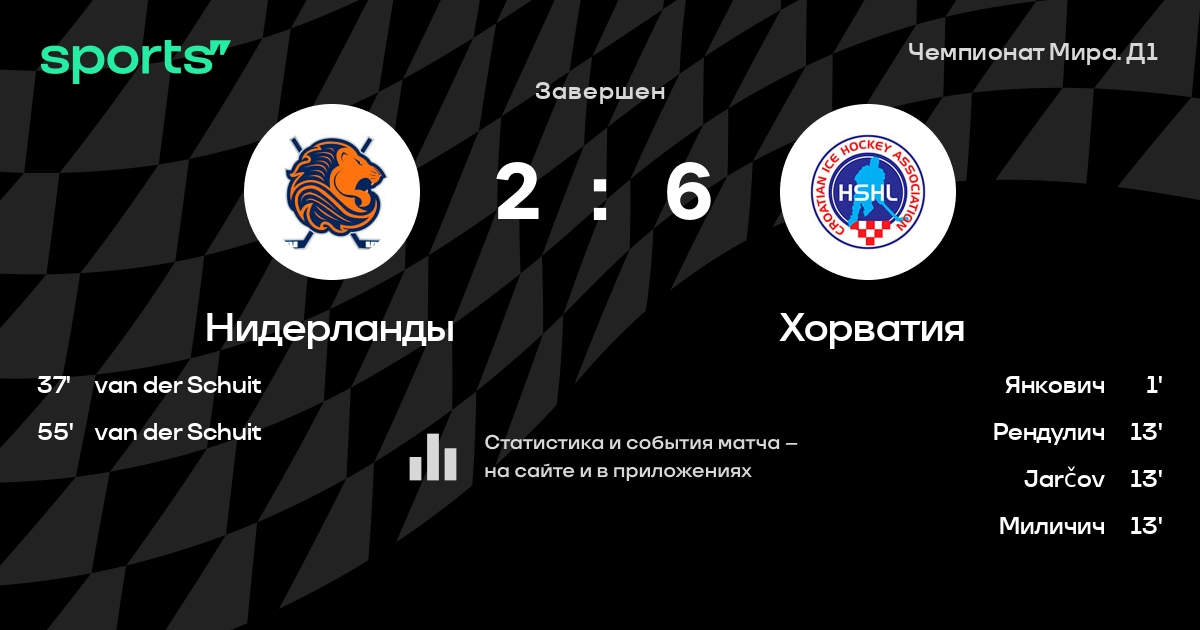 В прошедшем матче в рамках турнира Чемпионат Мира. Д1 (Группа B) состоялась встреча команд Нидерланды - Хорватия в городе Wembley на стадионе The SSE Arena
