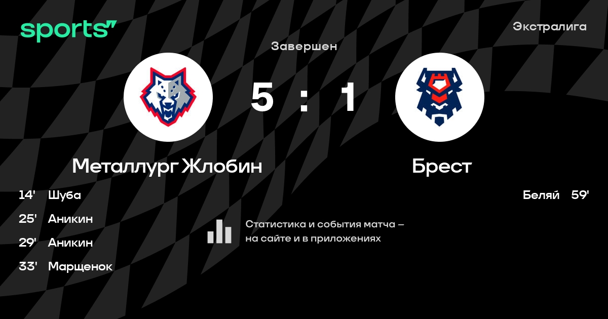 В прошедшем матче в рамках турнира Экстралига состоялась встреча команд Металлург Жлобин - Брест в городе Жлобин (Беларусь) на стадионе Ледовый дворец Металлург (вместимость - 2018)