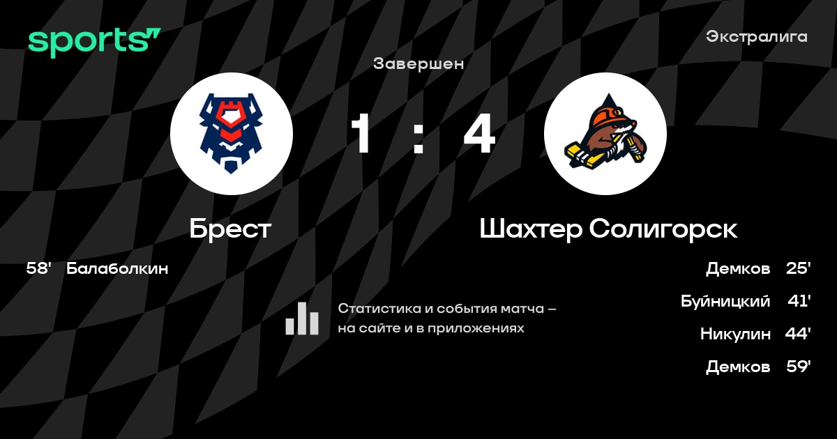 В прошедшем матче в рамках турнира Экстралига состоялась встреча команд Брест - Шахтер Солигорск в городе Брест (Беларусь) на стадионе Ледовый дворец Брест (вместимость - 2000)