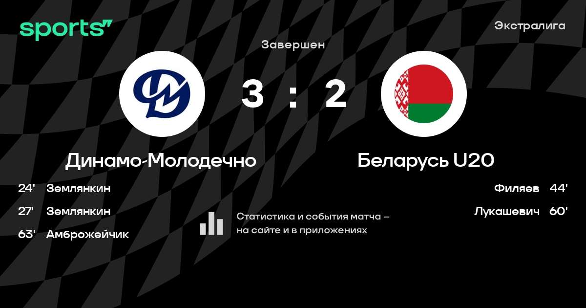 В прошедшем матче в рамках турнира Экстралига состоялась встреча команд Динамо-Молодечно - Беларусь U20 в городе Молодечно (Беларусь) на стадионе Ледовый дворец Молодечно (вместимость - 2000)