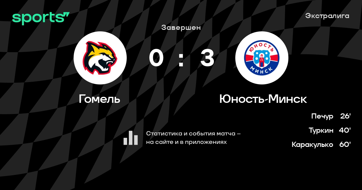 В прошедшем матче в рамках турнира Экстралига состоялась встреча команд Гомель - Юность-Минск в городе Гомель (Беларусь) на стадионе Ледовый дворец Гомель (вместимость - 2700)
