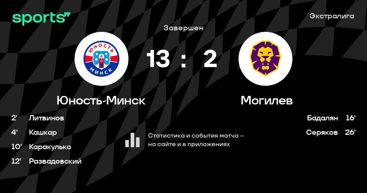 В прошедшем матче в рамках турнира Экстралига состоялась встреча команд Юность-Минск - Могилев в городе Minsk на стадионе Yunost Minsk Arena