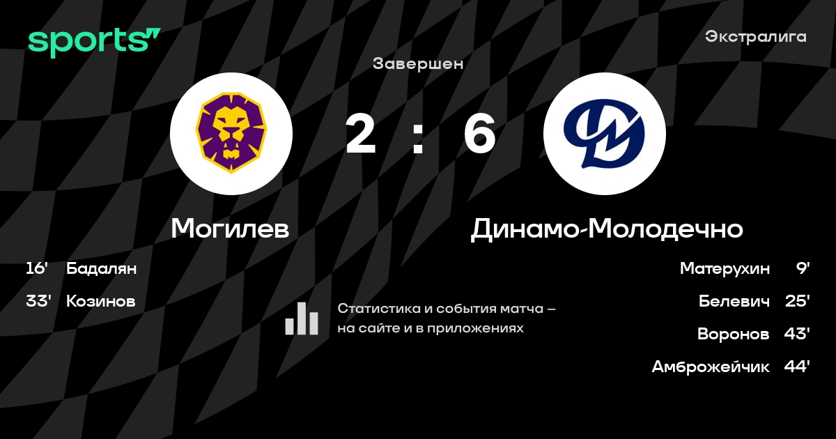 В прошедшем матче в рамках турнира Экстралига состоялась встреча команд Могилев - Динамо-Молодечно в городе Могилев (Беларусь) на стадионе Ледовый дворец спорта Могилев (вместимость - 3048)