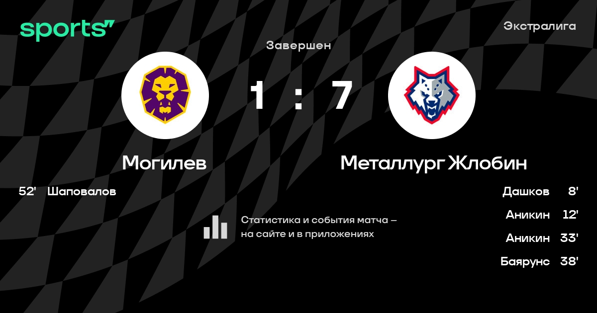 В прошедшем матче в рамках турнира Экстралига состоялась встреча команд Могилев - Металлург Жлобин в городе Могилев (Беларусь) на стадионе Ледовый дворец спорта Могилев (вместимость - 3048)
