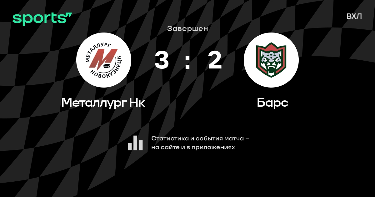 В прошедшем матче в рамках турнира ВХЛ состоялась встреча команд Металлург Нк - Барс