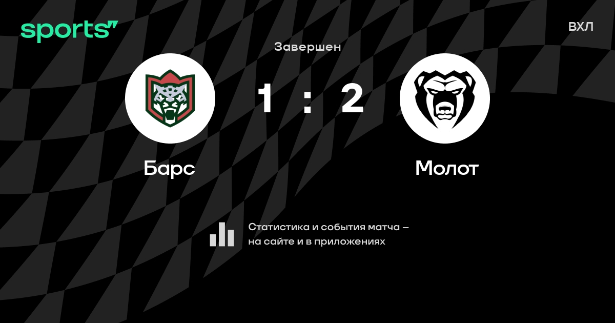 В прошедшем матче в рамках турнира ВХЛ состоялась встреча команд Барс - Молот