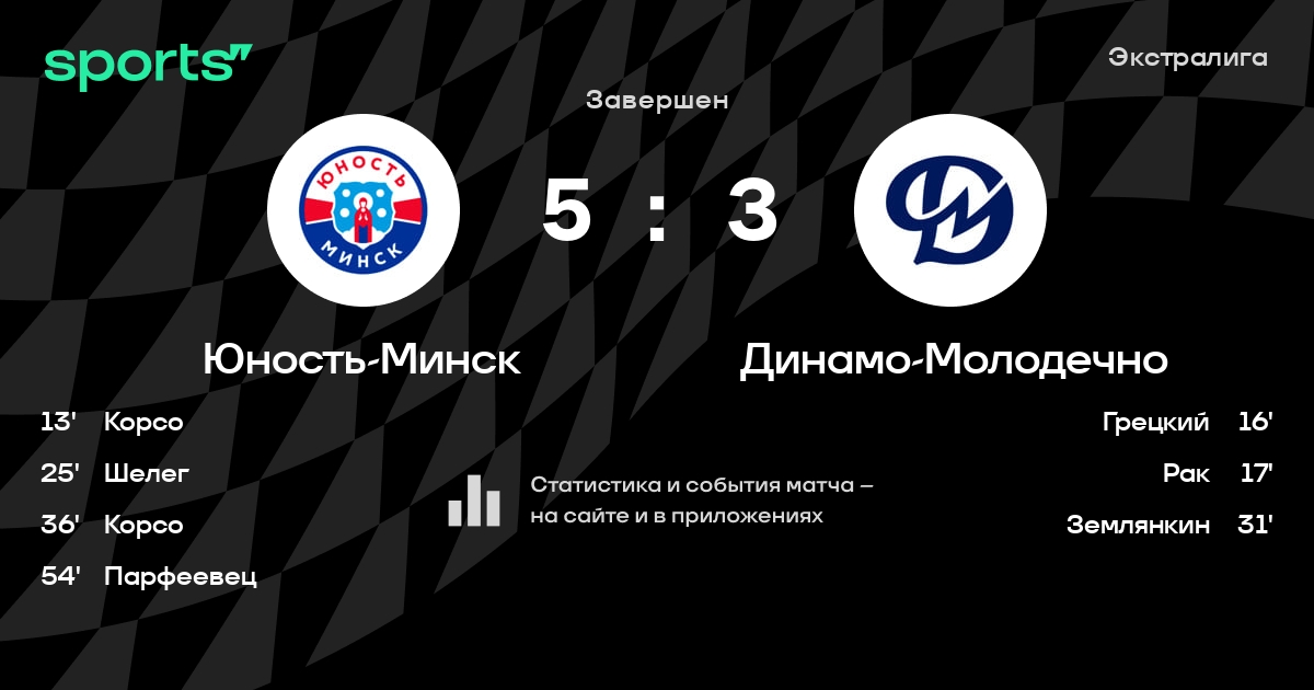 В прошедшем матче в рамках турнира Экстралига состоялась встреча команд Юность-Минск - Динамо-Молодечно в городе Minsk на стадионе Yunost Minsk Arena
