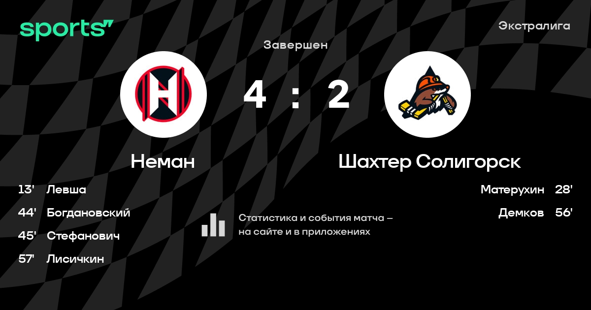 В прошедшем матче в рамках турнира Экстралига состоялась встреча команд Неман - Шахтер Солигорск в городе Гродно (Беларусь) на стадионе Ледовый дворец спорта Гродно (вместимость - 2500)