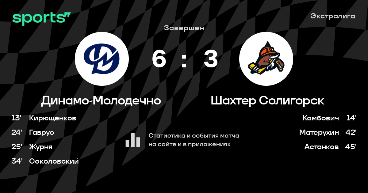 В прошедшем матче в рамках турнира Экстралига состоялась встреча команд Динамо-Молодечно - Шахтер Солигорск в городе Молодечно (Беларусь) на стадионе Ледовый дворец Молодечно (вместимость - 2000)