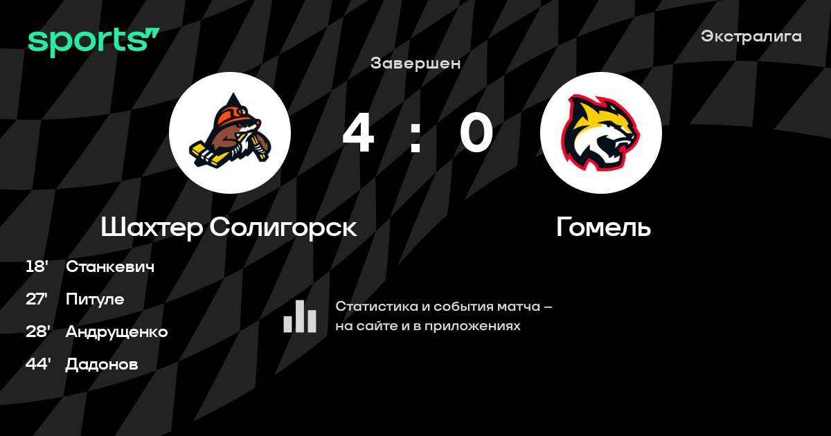 В прошедшем матче в рамках турнира Экстралига состоялась встреча команд Шахтер Солигорск - Гомель в городе Солигорск (Беларусь) на стадионе Ледовый дворец спорта Солигорск (вместимость - 1800)