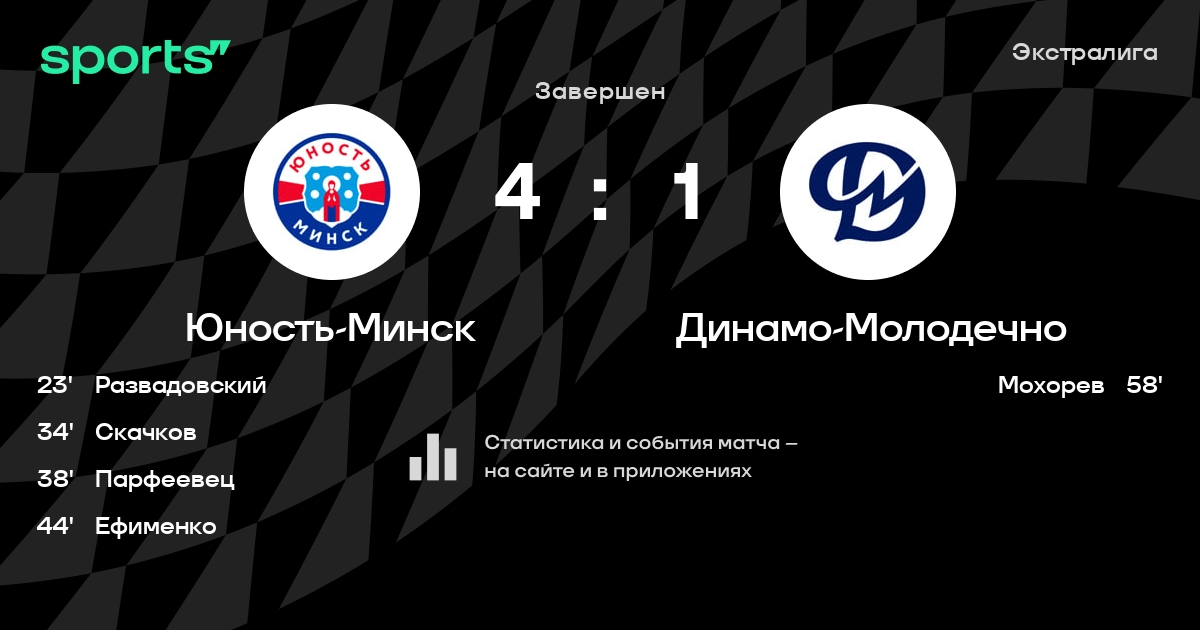 В прошедшем матче в рамках турнира Экстралига состоялась встреча команд Юность-Минск - Динамо-Молодечно в городе Minsk на стадионе Yunost Minsk Arena