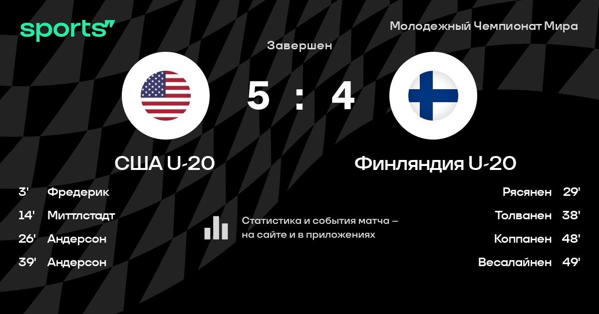 Как прошел матч, смотрите в текстовой трансляции США U-20 - Финляндия U-20 на Sports.ru