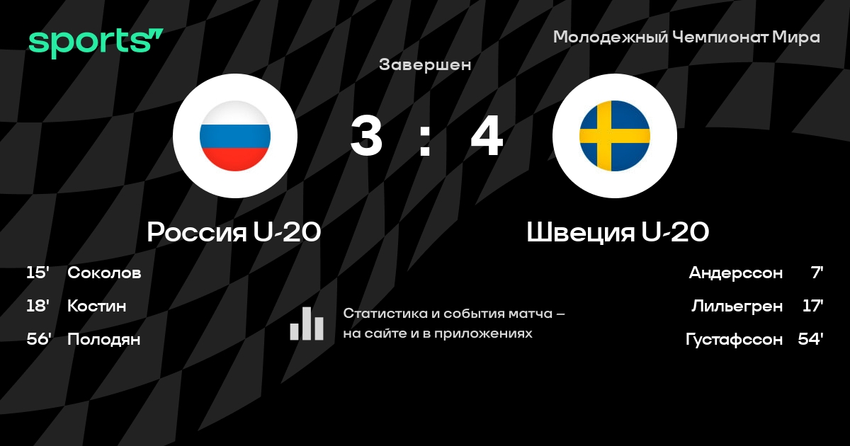 Как прошел матч, смотрите в текстовой трансляции Россия U-20 - Швеция U-20 на Sports.ru