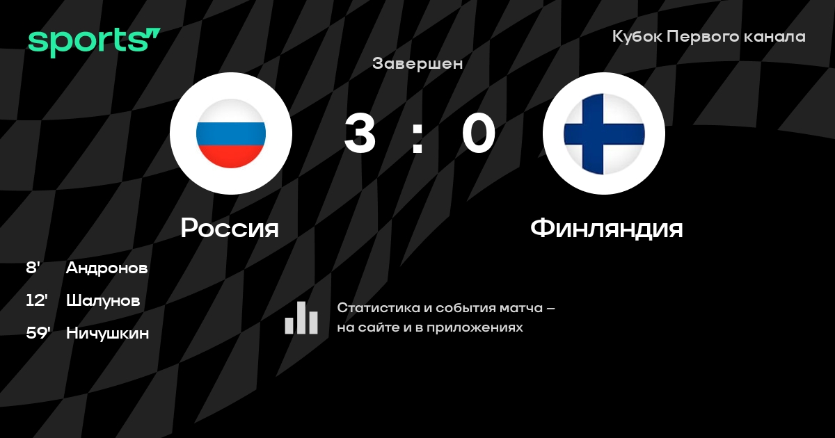 В прошедшем матче в рамках турнира Кубок Первого канала состоялась встреча команд Россия - Финляндия в городе Москва (Россия) на стадионе ЦСКА-Арена (вместимость - 5600)