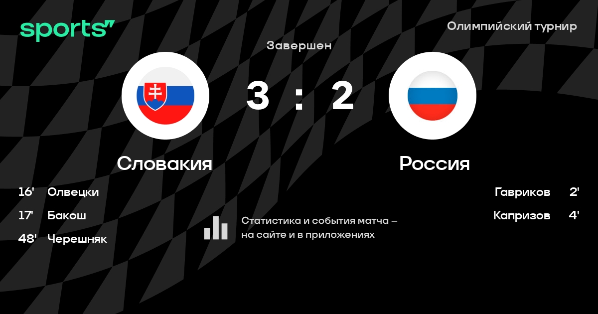 В прошедшем матче в рамках турнира Олимпийский турнир (1 тур) состоялась встреча команд Словакия - Россия в городе Gangneung на стадионе Gangneung Hockey Centre