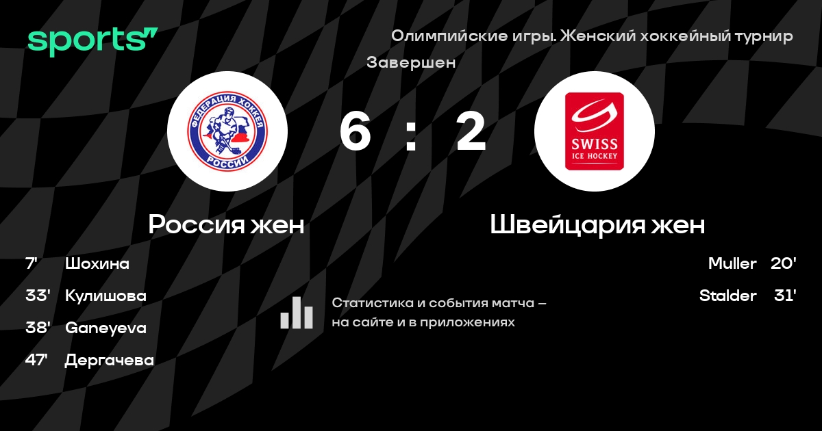 В прошедшем матче в рамках турнира Олимпийские игры. Женский хоккейный турнир состоялась встреча команд Россия жен - Швейцария жен в городе Gangneung на стадионе Catholic Kwandong University Gymnasium