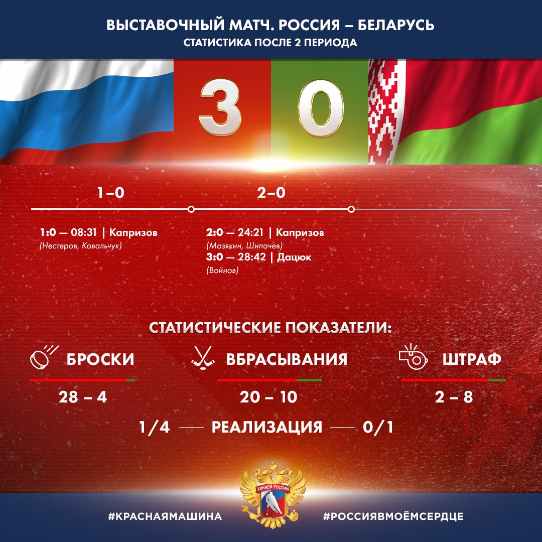 40Перерыв. Огромное игровое преимущество у России. За два периода Беларусь нанесла только четыре броска.