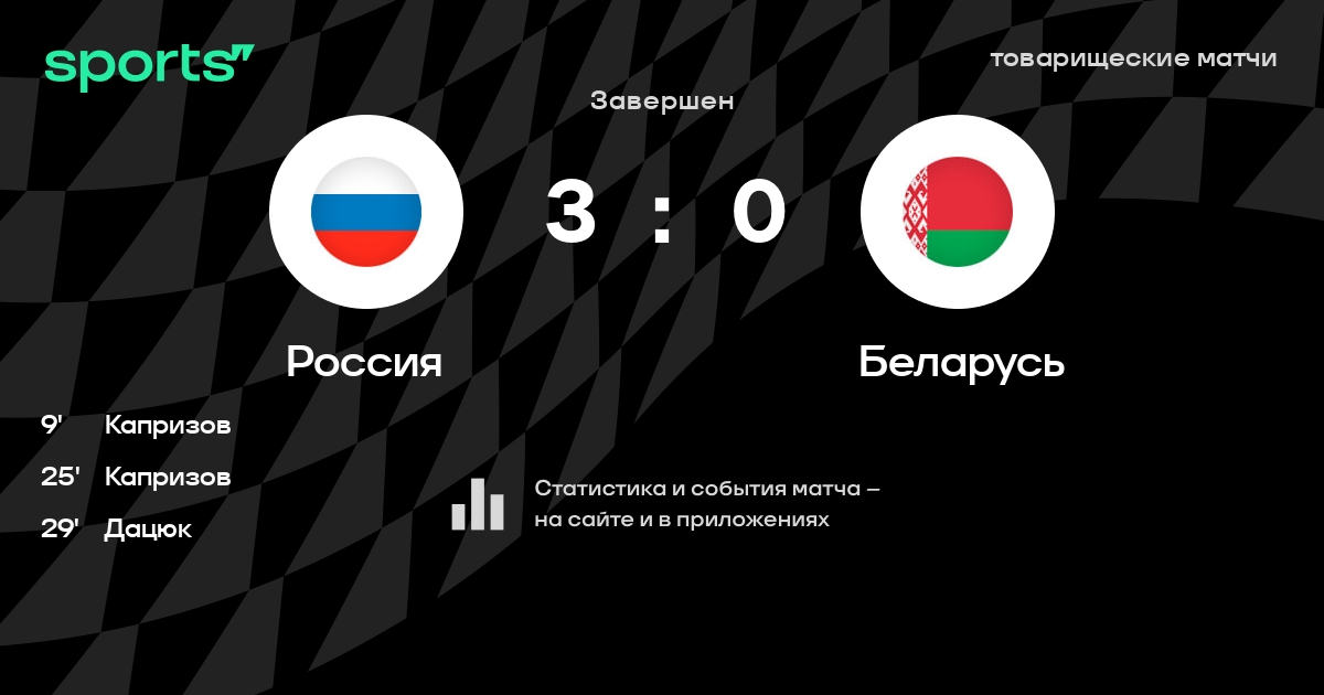 В прошедшем матче в рамках турнира товарищеские матчи состоялась встреча команд Россия - Беларусь в городе Москва (Россия) на стадионе ЦСКА-Арена (вместимость - 5600)