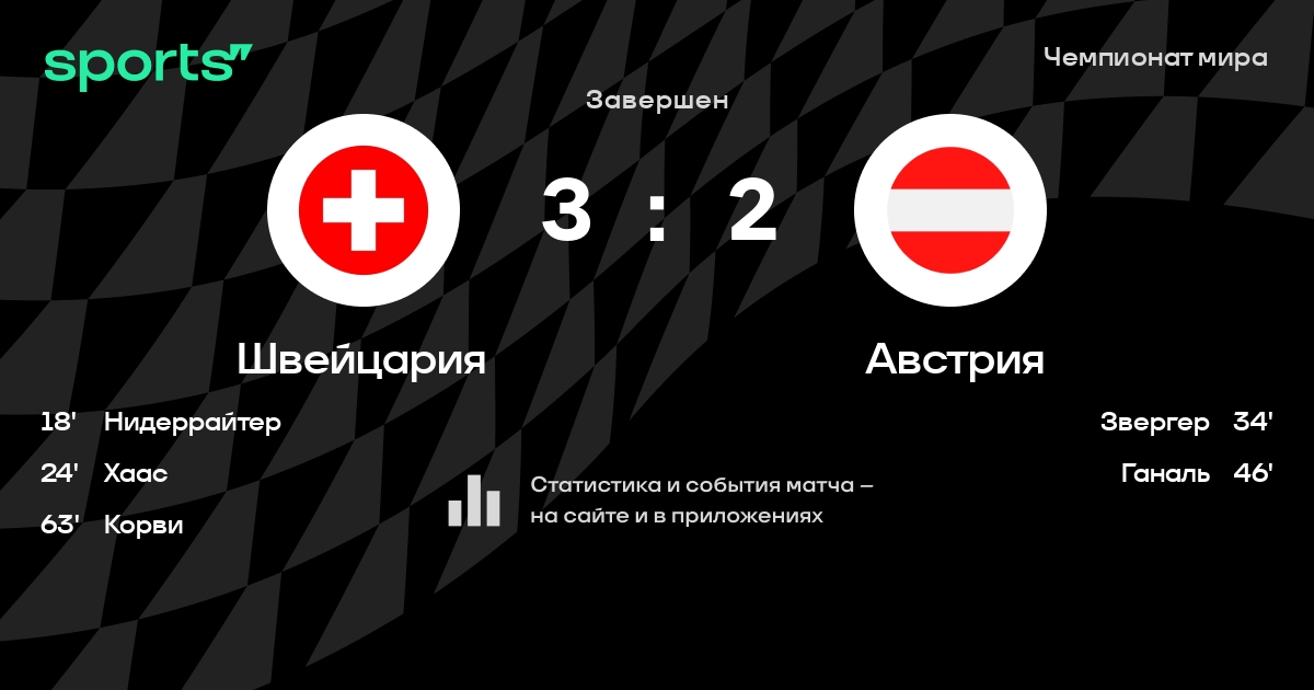 Как прошел матч, смотрите в текстовой трансляции Швейцария - Австрия на Sports.ru