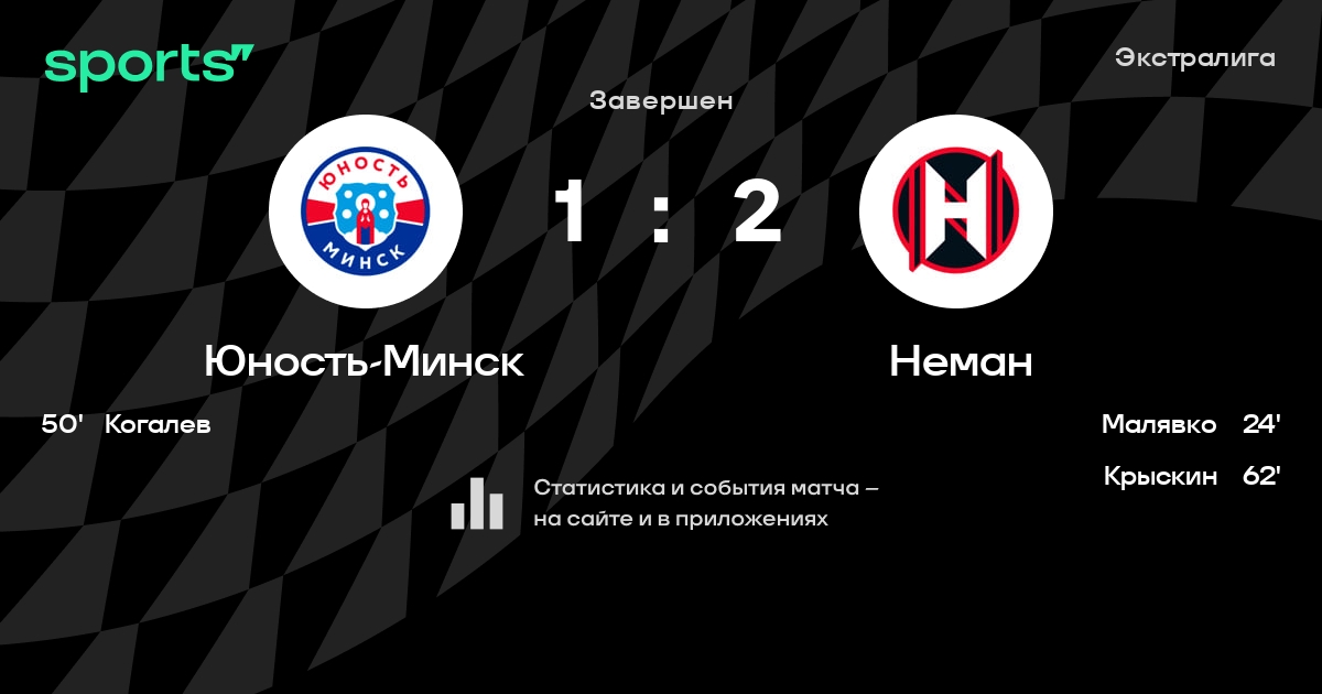 В прошедшем матче в рамках турнира Экстралига состоялась встреча команд Юность-Минск - Неман в городе Минск (Беларусь) на стадионе Чижовка-Арена (вместимость - 9487)