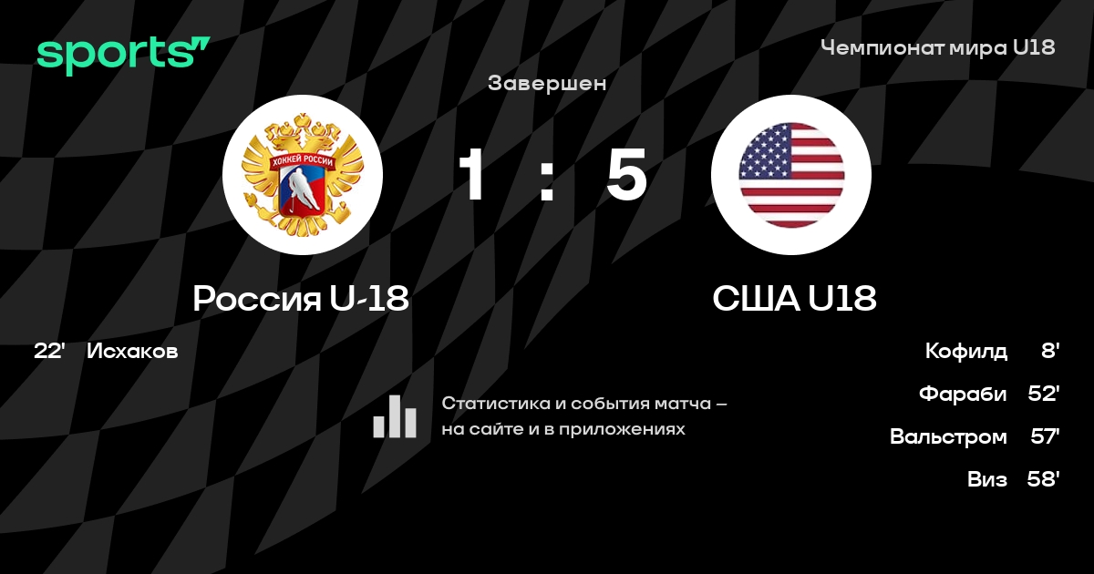 В прошедшем матче в рамках турнира Чемпионат мира U18 (Четвертьфинал) состоялась встреча команд Россия U-18 - США U18 в городе Челябинск (Россия) на стадионе Арена Трактор (вместимость - 7500)