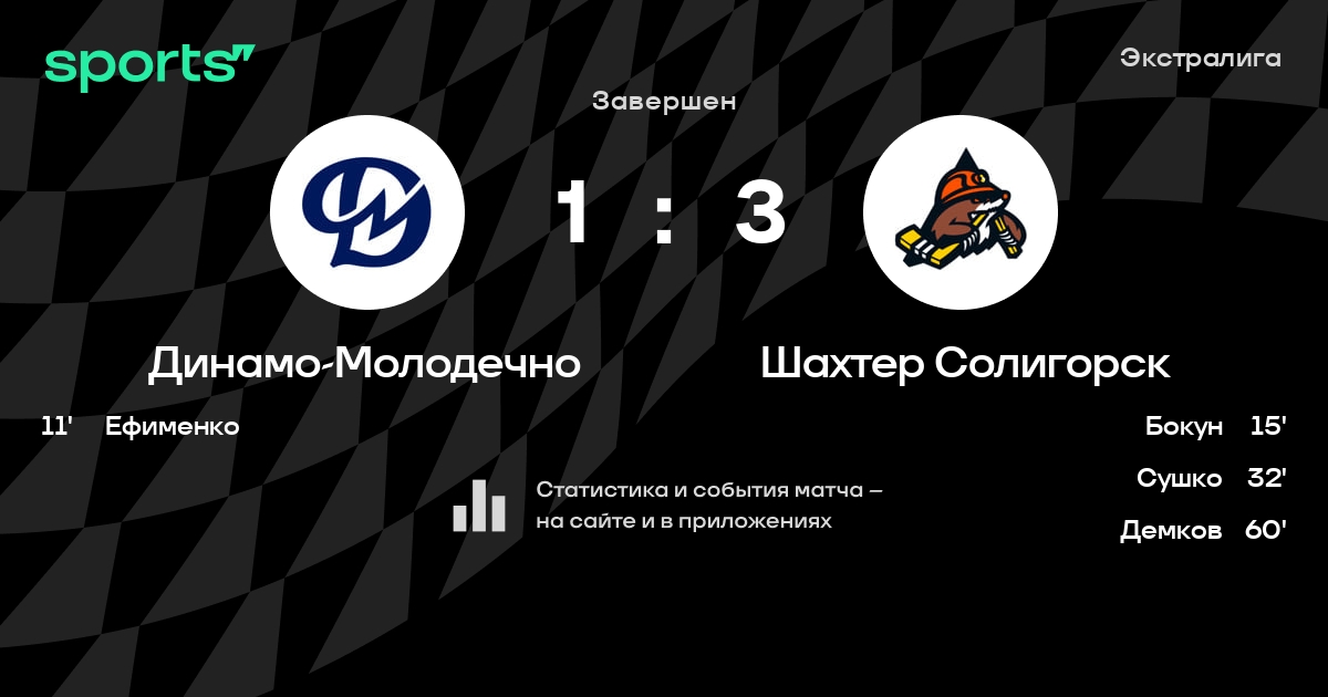В прошедшем матче в рамках турнира Экстралига состоялась встреча команд Динамо-Молодечно - Шахтер Солигорск в городе Молодечно (Беларусь) на стадионе Ледовый дворец Молодечно (вместимость - 2000)