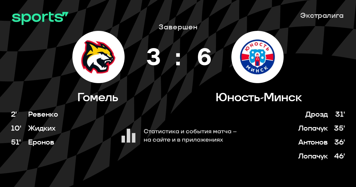 В прошедшем матче в рамках турнира Экстралига состоялась встреча команд Гомель - Юность-Минск в городе Гомель (Беларусь) на стадионе Ледовый дворец Гомель (вместимость - 2700)