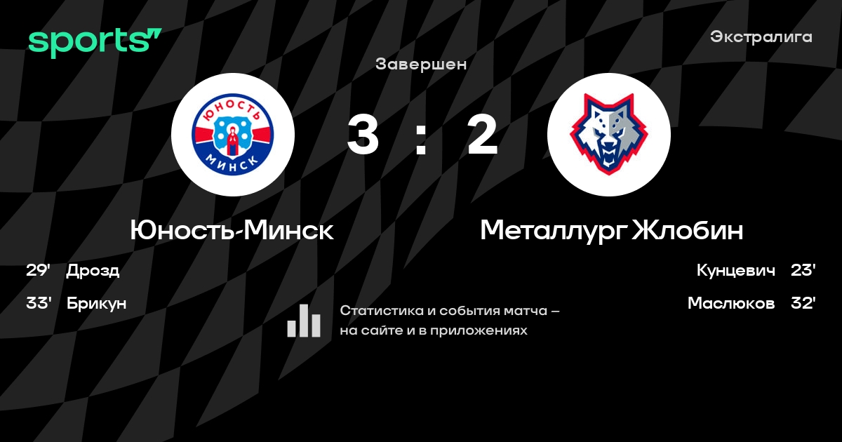 В прошедшем матче в рамках турнира Экстралига состоялась встреча команд Юность-Минск - Металлург Жлобин в городе Минск (Беларусь) на стадионе Чижовка-Арена (вместимость - 9487)