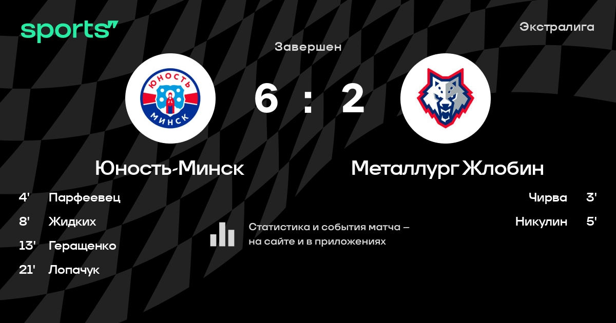 В прошедшем матче в рамках турнира Экстралига состоялась встреча команд Юность-Минск - Металлург Жлобин в городе Минск (Беларусь) на стадионе Чижовка-Арена (вместимость - 9487)