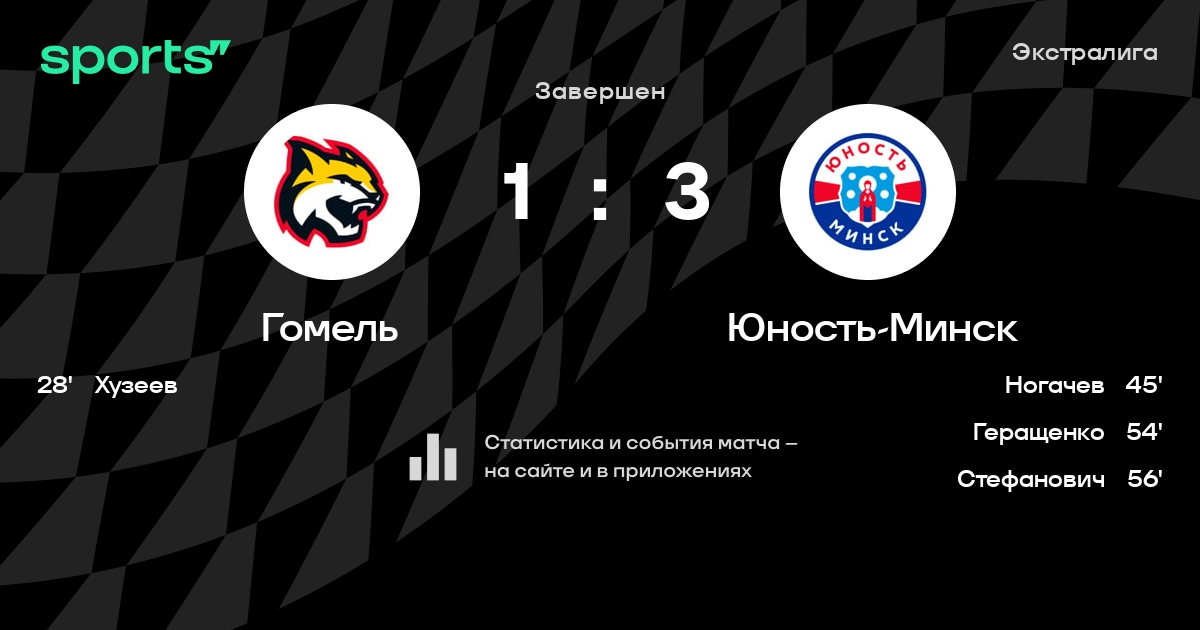 В прошедшем матче в рамках турнира Экстралига состоялась встреча команд Гомель - Юность-Минск в городе Гомель (Беларусь) на стадионе Ледовый дворец Гомель (вместимость - 2700)